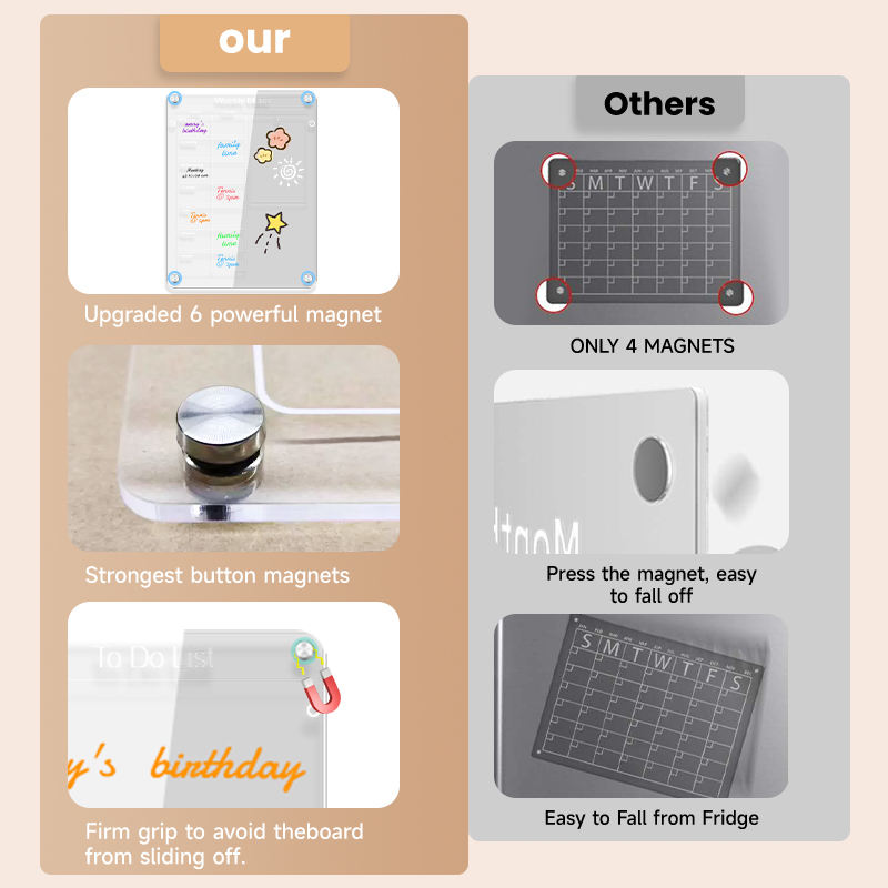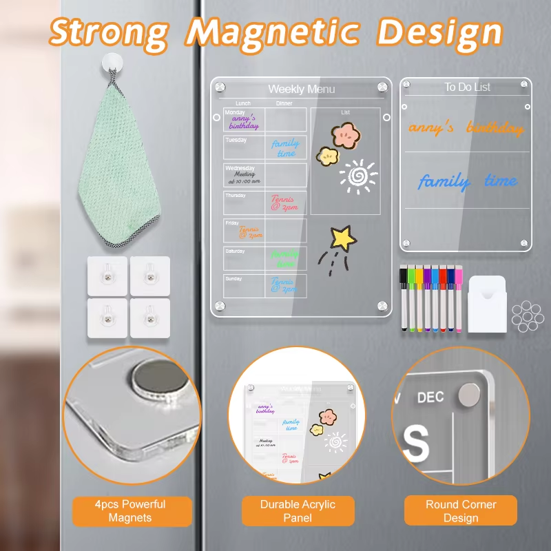 ● Bảng trắng acrylic từ tính của chúng tôi có thể tùy chỉnh in ấn và kích thước theo ý tưởng của bạn.
